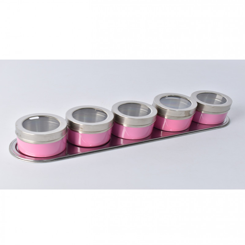طقم تخزين توابل مغناطيس مكون من 5 قطع فضي / وردي