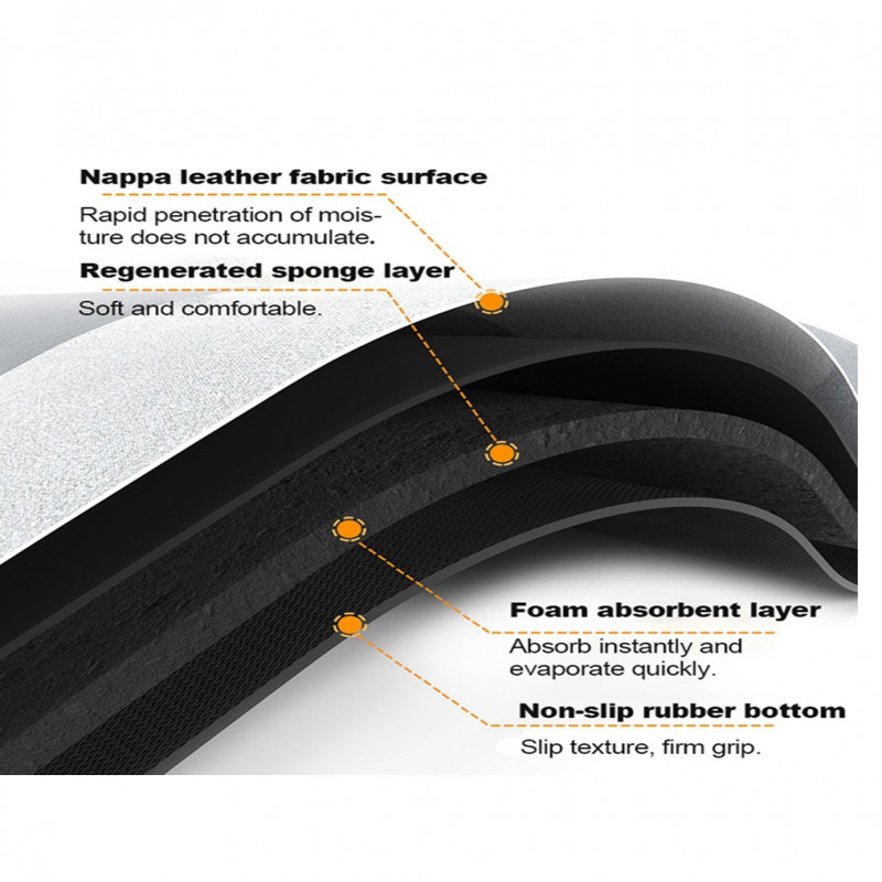 مصنوع من جلد نابا عالي الجودة + مطاط ، ناعم ، صديق للبشرة ، صديق للبيئة ، متين. يمكن أن تمتص الرطوبة بسرعة وتكون طبقة الإسفنج المجددة ناعمة ، مما يجعلك مرتاحًا