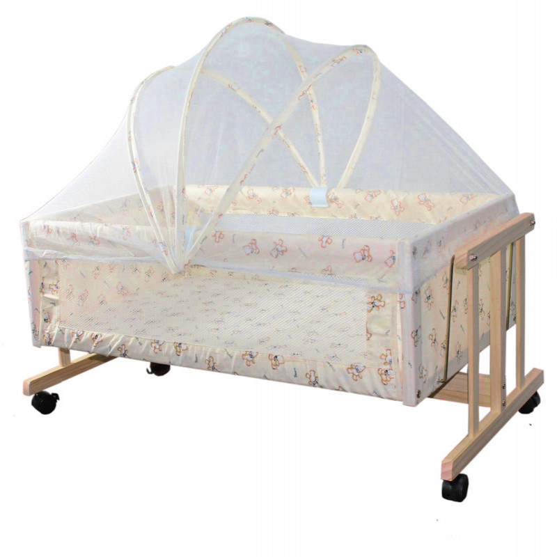 بابل سرير خشبي مع شبكة من البعوض ، خشب الصفصاف من الدرجة الأولى ، اللون الخشبي الأصلي دون أي لوحة ، صديقة للبيئة لحماية صحة طفلك ، سهلة المطوية على الجانب الممتد