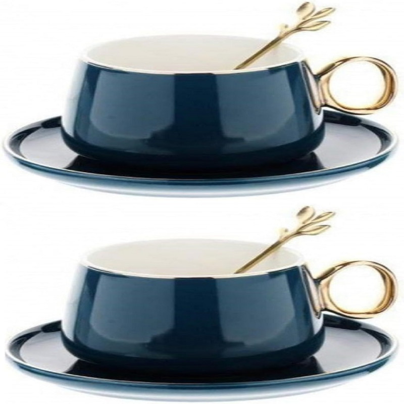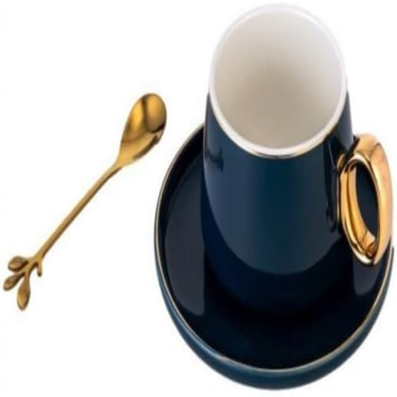طقم أكواب وصحون من السيراميك مكون من 6 قطع مع ملعقة