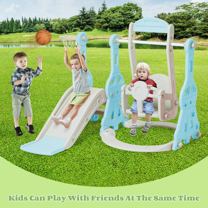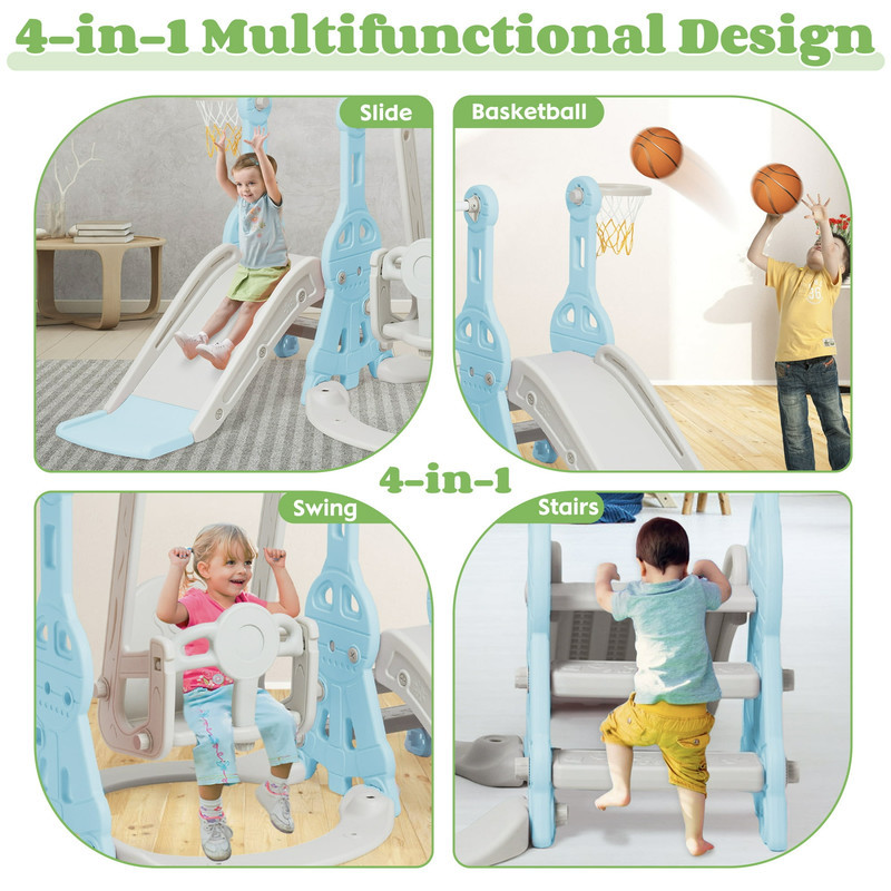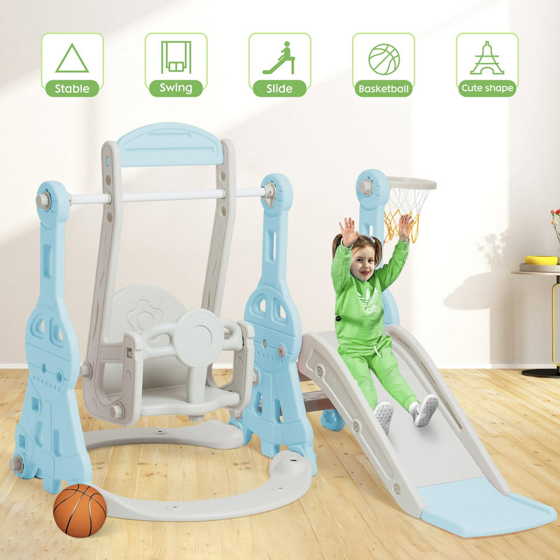 زحليقة مع مرجيحة وسلم تسلق و حلقة كرة سلة 4*1 ,138*118*110 سم أزرق