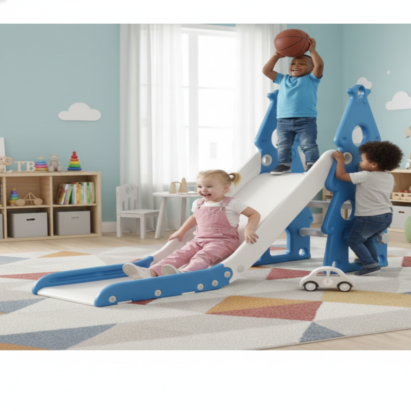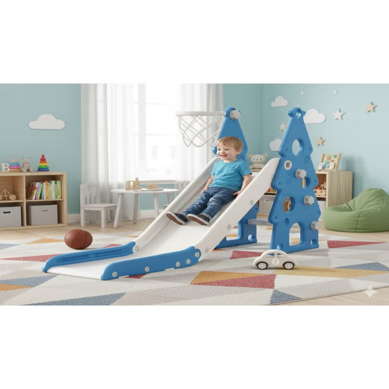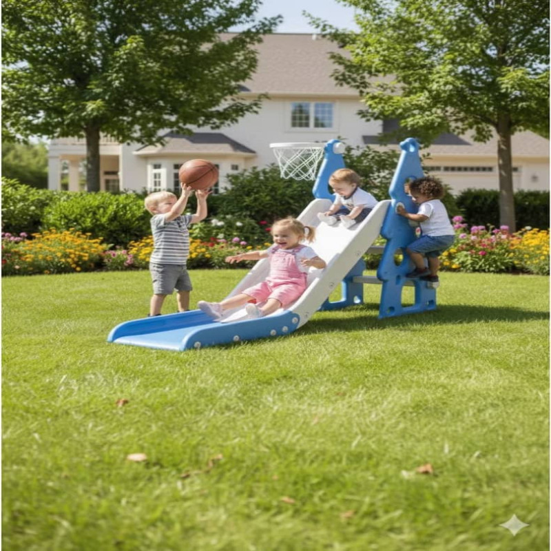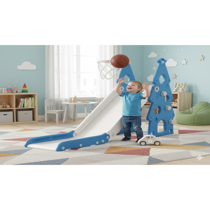 زحليقة أطفال صغيرة 2 في 1 مع حلقة كرة سلة، زحليقة قابلة للطي للأطفال الصغار والأولاد والبنات والمتسلقين، ألعاب داخلية وخارجية