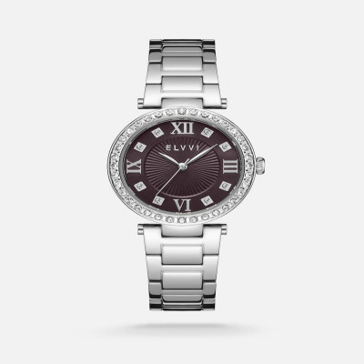 طقم هدايا نسائي من ماركة إلڤي مكون من ساعة وثلاث اساور باللون الفضي ، الساعة بسير من الستيل بلون فضي بتصميم فاخر ، ساعة بميناء باللون الأرجواني ، يتزين الميناء بإطار بارز مرصع بفصوص من الزركون البراق بتصميم متفرد، الاساور بتصميم راقي وناعم باللون الفضي ، يمكنك الاختيار بينهم او ارتدائهم معا ، ارتدي الطقم كامل لإطلاله مفعمه بالأناقه والرقي .
