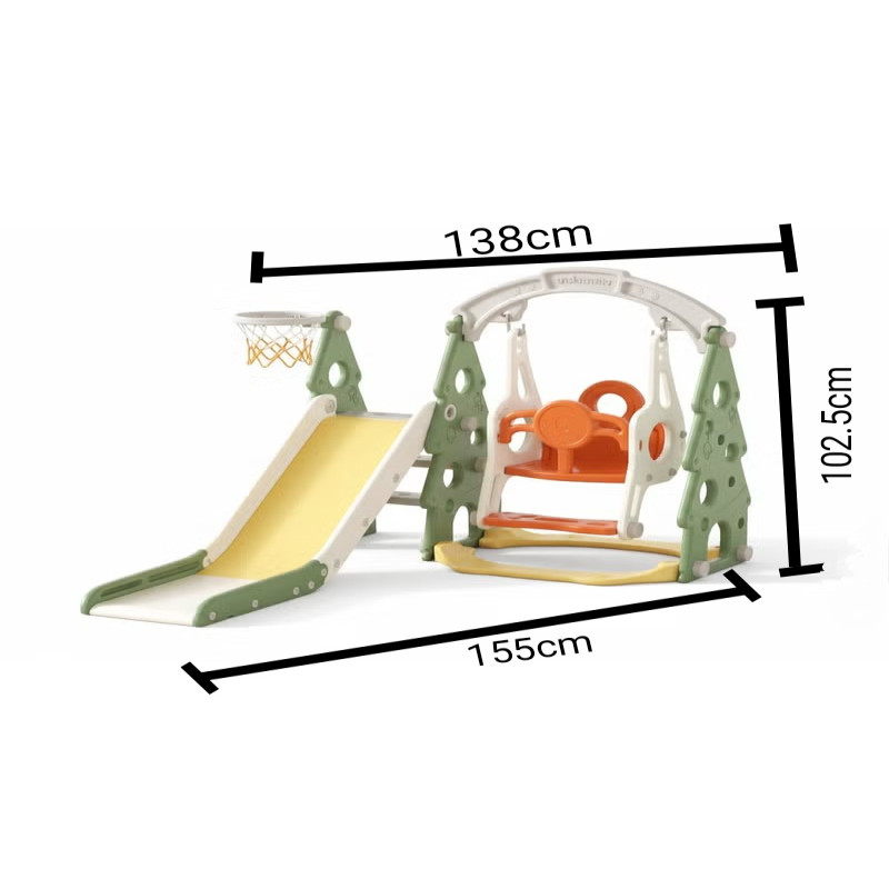زحليقة مع مرجيحة مع كرة سلة للعب في الداخل أو في الهواء الطلق سهل التجميع والنقل
