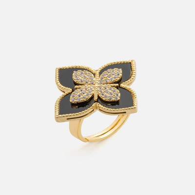 - التفاصيل: خاتم بتصميم حلية بشكل وردة بلون أسود مرصعه بعدد من فصوص الزركون اللامع