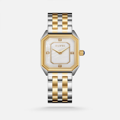 ساعة نسائيه من ماركة إلڤي ، ساعة بسوار من الستانلس ستيل باللون الذهبي و الفضي ، صممت الساعة بتصميم كلاسيك ، ساعة بميناء مستطيل باللون الأبيض وبعدد من فصوص الزركون اللامع في مكان الأرقام ، ساعة بتصميم كلاسيك بلمسات مميزة ستناسب هذه الساعة إطلالتك الأنيقه في مختلف الأوقات ضمان سنة